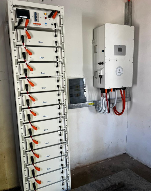 • 61.44KWh DEYE HV Lithium Battery – massive storage for full-day operation